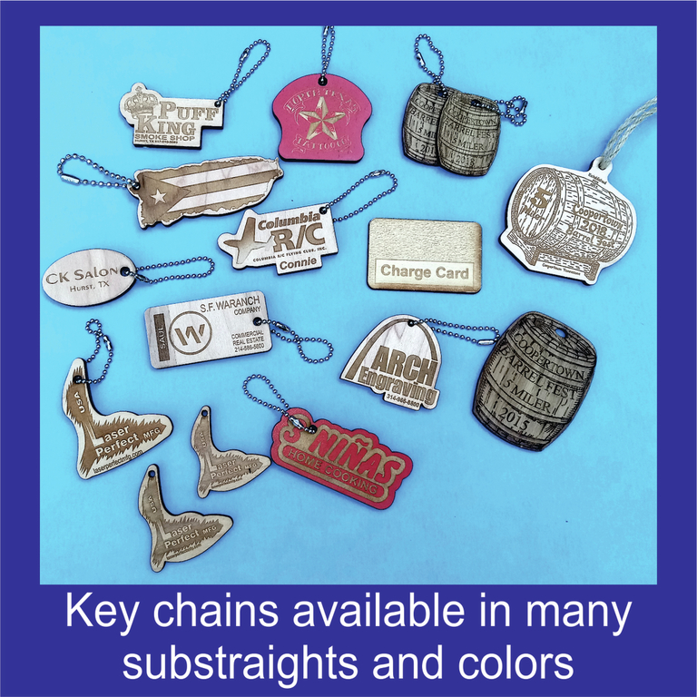 TEXT and PHOTOS, Military seals, graphic images, graduation and/or wedding invitations, company logo and promotiona keychains. A made in USA alternative.
